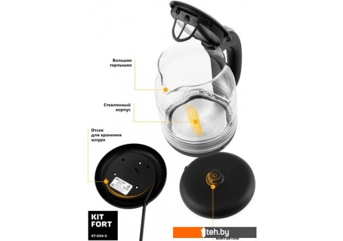 Фотографии, описание и технические характеристики модели чайника Kitfort KT-654-5 взяты из открытых источников, официального сайта производителя или представительства Kitfort в Республике Беларусь.