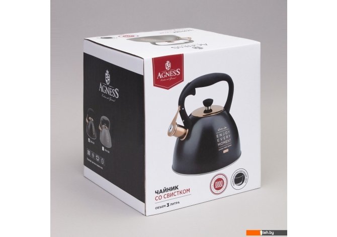 | Информация | - Надежность, функциональность и стильный дизайн. Чайник Agness 914-157 изготовлен из нержавеющей стали, что делает его прочным и гигиеничным. - Капсульное термоаккумулирующее дно с алюминиевой прослойкой обеспечивает длительное сохранение тепла. Многослойная структура, включающая толстую алюминиевую пластину, позволяет воде быстрее закипать и дольше оставаться горячей благодаря высокой теплопроводности. - Удобство в использовании: просто нажмите на клапан на ручке, чтобы легко налить воду. Встроенный свисток уведомит вас, когда вода закипела, и пора снимать чайник с плиты. - Стильный внешний вид и жаропрочное покрытие делают этот чайник отличным дополнением к любой кухне. Он подходит для всех типов плит, включая индукционные. - Обратите внимание: не нагревайте пустой чайник и заполняйте его не менее чем на 2/3 объема. Нагревание с недостаточным количеством воды может привести к изменению цвета корпуса. Следите за тем, чтобы диаметр конфорки соответствовал диаметру дна чайника, а пламя не касалось его корпуса. Не используйте в микроволновой печи и посудомоечной машине; рекомендуется ручная мойка. - Металлический чайник — это незаменимый атрибут вашего дома и отличный подарок для близких! |