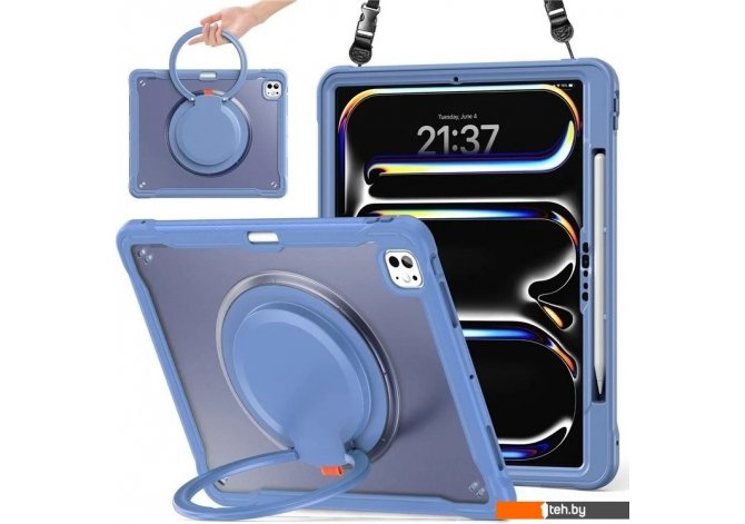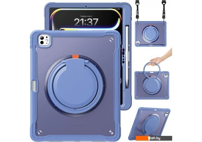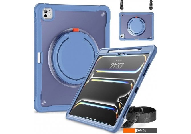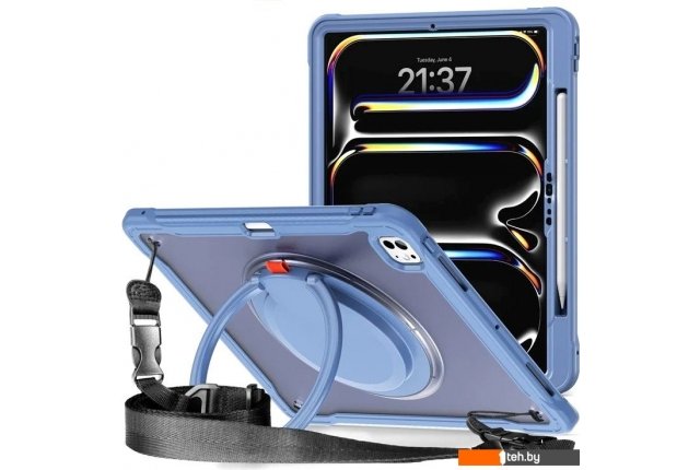 | Информация | - 360-градусная вращающаяся ручка: благодаря вращающейся на 360 градусов ручке вы можете удобно подвешивать устройство в любом месте, что обеспечивает универсальные варианты переноски. - Амортизирующая защита: утолщенный угловой дизайн из силикона отлично поглощает удары, защищая планшет от падений и повреждений. - Двухслойная защита: корпус состоит из прочной TPU-кожи и жесткой внутренней оболочки из ПК, что обеспечивает надежную защиту устройства. - Регулируемые углы просмотра: встроенная подставка поддерживает режимы ландшафта и портрета, позволяя легко настраивать угол обзора по вашему желанию. - Защита всего корпуса: этот чехол обеспечивает надежную защиту благодаря прочной конструкции, защищая от падений и обеспечивая амортизацию для повседневного использования. - Удобный ремешок для переноски: регулируемый нейлоновый ремешок с пластиковыми зажимами позволяет легко прикреплять устройство к автомобильным сиденьям, что делает его идеальным для развлечений в пути. - Слот для боковой ручки: предусмотрен слот для безопасного хранения стилуса (стилус не входит в комплект), что гарантирует его доступность, когда он вам нужен. |