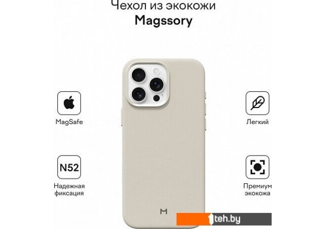 Фотографии, описание и технические характеристики модели чехла на телефоны Magssory Eco Leather Case Ivory для iPhone 16 Pro CLT028i взяты из открытых источников, официального сайта производителя или представительства Magssory в Республике Беларусь.