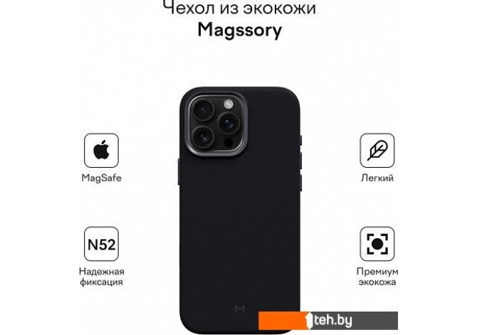 Фотографии, описание и технические характеристики модели чехла на телефоны Magssory Eco Leather Case Midnight для iPhone 16 Pro Max CLT029m взяты из открытых источников, официального сайта производителя или представительства Magssory в Республике Беларусь.