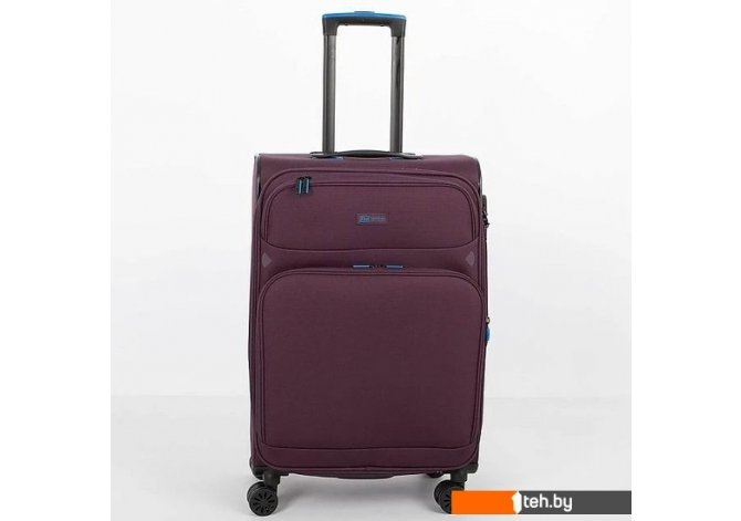 | Информация | Чемодан-спиннер от торговой марки Francesco Molinary из практичного полиэстера плотностью 900 Ден с влагостойкой пропиткой в пурпурном цвете. Модель на четырех сдвоенных колесах, с выдвижной ручкой с железными трубками, прорезиненной ручкой-переноской сверху и ручкой сбоку, держателем на дне. Закрывается двойной антивандальной молнией; имеется кодовый замок TSA и раздвижка на молнии для увеличения объема. Верхние углы укреплены прорезиненными накладками. Внутри: уплотненная фирменная подкладка; на крышке – карман-сетка на молнии, в глубоком отделении – фиксирующие ремни для багажа. На лицевой стороне – два кармана на молнии. |