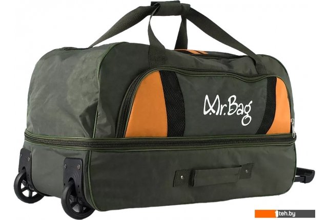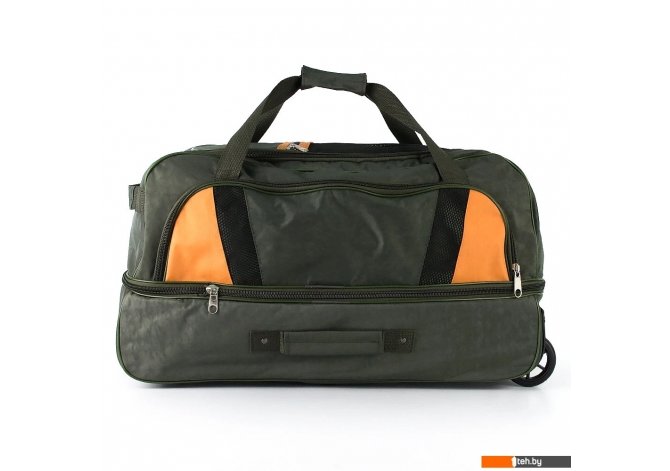 | Информация | Большая дорожная сумка на колёсах от торговой марки Mr.Bag выполнена из практичного текстильного материала цвета хаки с яркими оранж евыми вставками на лицевой стороне. Модель на двух колесах, для надежности утопленных в корпус, с выдвижной ручкой, двумя удлиненными ручками с фиксатором на липучке, двумя ручками по бокам и ручкой сверху. Закрывается клапаном на круговой молнии. На клапане имеется карман-сетка на молнии. Отделение без подкладки. На лицевой стороне – накладной карман на молнии и надпись с названием бренда, на задней – карман на молнии. Имеется раздвижка на молнии для увеличения объема. Дно сумки оснащено большой круглой пластиковой ножкой. Сумка весом 2,4 кг рассчитана на объем до 106,5 литров. |