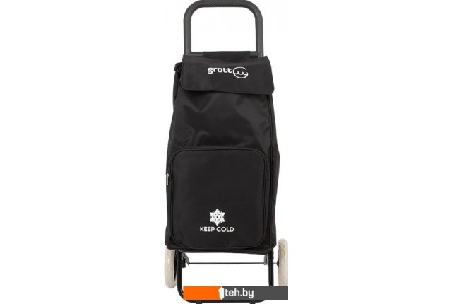 | Информация | ? Сумка-тележка от торговой марки Grott в черном цвете. ? Модель с металлической тележкой на двух крупных колесах. ? Сумка крепится к тележке лямкой на липучке. ? Закрывается клапаном; затягивается шнурком. ? Глубокое отделение. ?? На лицевой стороне – вместительный термокарман на молнии. |