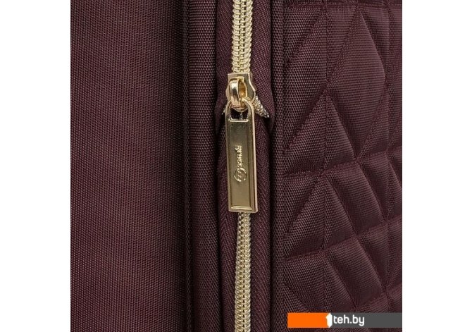 | Информация | Чемодан-спиннер от торговой марки Grott из прочного текстильного материала бордового цвета. Модель на четырех пластиковых колесах, с выдвижной ручкой с железными трубками, ручками-переносками сверху и сбоку. Закрывается молнией золотистого цвета; имеется замок TSA, утопленный в корпус. Внутри: фирменная подкладка плотностью 210 Ден; на крышке – два кармана на молнии, в том числе карман-сетка; в глубоком отделении – ремни для фиксации багажа. На лицевой стороне – карман на молнии; вставка, декорированная мягкой стежкой. Верхние углы креплены пластиковыми накладками для защиты от износа. Имеется раздвижка на молнии для увеличения объема. |