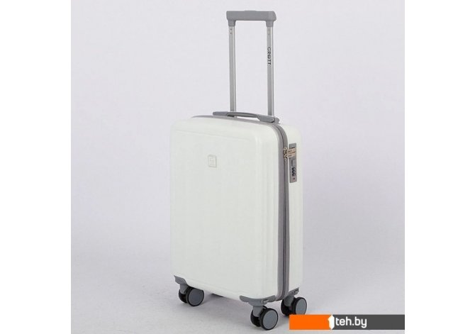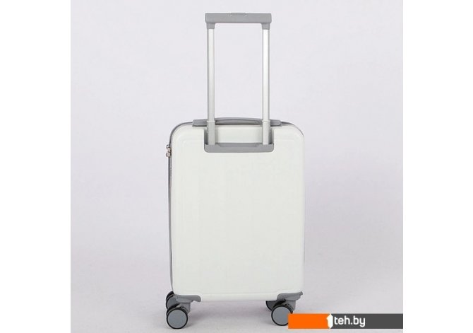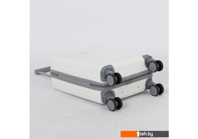 | Информация | Чемодан-спиннер от торговой марки Grott из ударопрочного ABS-пластика в сочетании белого и серого цвета. Модель на четырех сдвоенных съемных пластиковых колесах, с выдвижной железной ручкой, ручкой-переноской сверху. Закрывается молнией; имеется кодовый замок, утопленный в корпус. Внутри: фирменная подкладка плотностью 210 Ден с поролоновой вставкой; в одной части – клапан-разделитель на молнии, карман-сетка на молнии, в другой части – перекрестные ремни для фиксации багажа. Чемодан подходит под размер ручной клади. |
