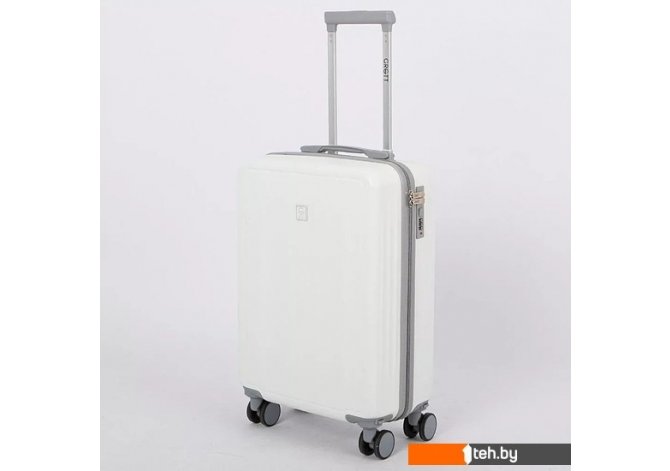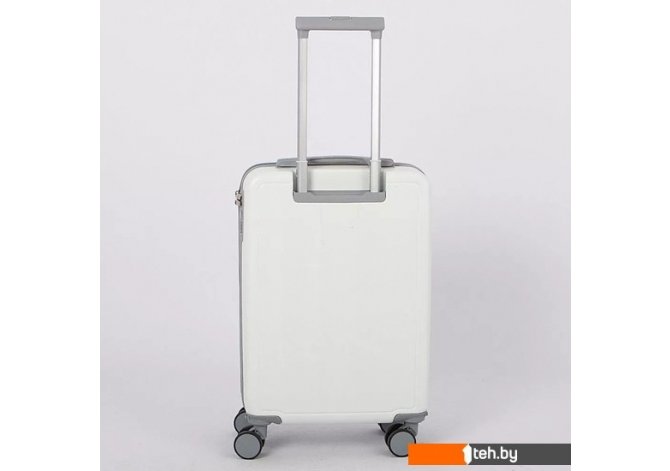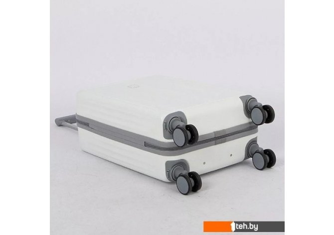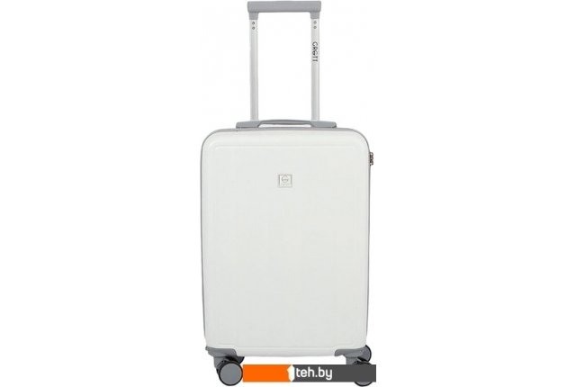 | Информация | Чемодан-спиннер от торговой марки Grott из ударопрочного ABS-пластика в сочетании белого и серого цвета. Модель на четырех сдвоенных съемных пластиковых колесах, с выдвижной железной ручкой, ручкой-переноской сверху. Закрывается молнией; имеется кодовый замок, утопленный в корпус. Внутри: фирменная подкладка плотностью 210 Ден с поролоновой вставкой; в одной части – клапан-разделитель на молнии, карман-сетка на молнии, в другой части – перекрестные ремни для фиксации багажа. |
