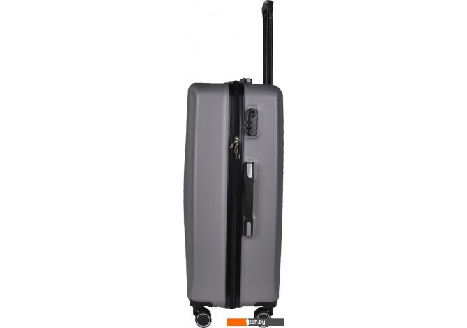 Информация | Легкий чемодан на четырех вращающихся колесах. Изготовлен из твердого, устойчивого к царапинам материала. Одна часть закрывается перегородкой с дополнительными карманами, другая часть фиксируется ремнями. Удобная ручка, внутренняя рама, кодовый замок. |