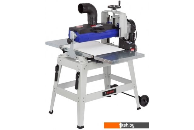 | Информация | Шлифовальный барабанный станок BELMASH DS410-W предназначен для обработки деревянных заготовок путем шлифования абразивным материалом.Основной рабочий орган – шлифовальный барабан длиной 410 мм и диаметром 132 мм, на который намотана шлифовальная лента.Станок снабжен дополнительными секциями стола (сталь) - подающим и приемным.Частота вращения шлифовального барабана составляет 1440 оборотов в минуту, что достигается благодаря асинхронному электродвигателю мощностью 1500 Вт.В станке реализована функция автоподачи. Заготовка протягивается транспортной лентой из специального нескользящего материала. В движение ленту приводит дополнительный коллекторный электродвигатель мощностью 80 Вт. Скорость подачи регулируется от 0 до 3,5 м/мин.Максимальная ширина обрабатываемой заготовки составляет 400 мм. Положение шлифовального блока настраивается по высоте с помощью маховика, максимальная высота заготовки – 80 мм, минимальная – 5 мм.Шлифовальный барабан имеет консольное расположение. При необходимости обработки более широких заготовок можно снять левую стойку и в два прохода обрабатывать детали шириной до 800 мм. |