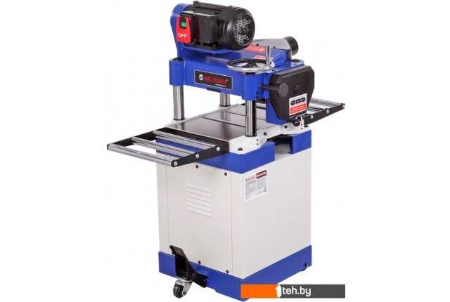 | Информация | Станок предназначен для обработки древесины с целью придания ей необходимых размеров и форм – рейсмусования. Для подключения используется сеть 230 Вт. Подача осуществляется автоматически. Скорость зубчатого вала подачи регулируется и составляет 5 и 9 м/ мин, принимающий вал – цельный. Для снижения трения заготовки, на рабочем столе установлено два настольных ролика. Дополнительные столы также являются роликовыми. Установлен трех ножевой строгальный вал, который можно заменить на вал helical. В комплекте имеется специальное приспособление для установки ножей. Осуществлена система перемещения станка. Патрубок для отвода стружки имеет диаметр 100 мм. Со стороны подачи установлен ряд защитных упоров, предотвращающих отдачу заготовки во время процесса строгания. |