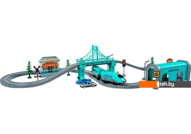 Информация | При нажатии на кнопку локомотива, поезд поедет по рельсам самостоятельно. В вагончик можно посадить пассажира Звуковые эффекты Легко собрать Возможны разные варианты крепления рельсов Совместим с другими моделями железной дороги Bondinbon. |