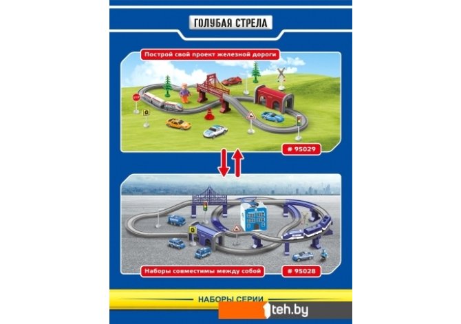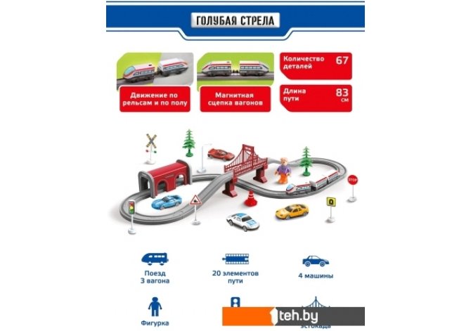 | Состав набора | Локомотив 2 шт., вагон, элементы пути 33 шт., элементы для сборки мостов 10 шт., детали 20 шт. |
