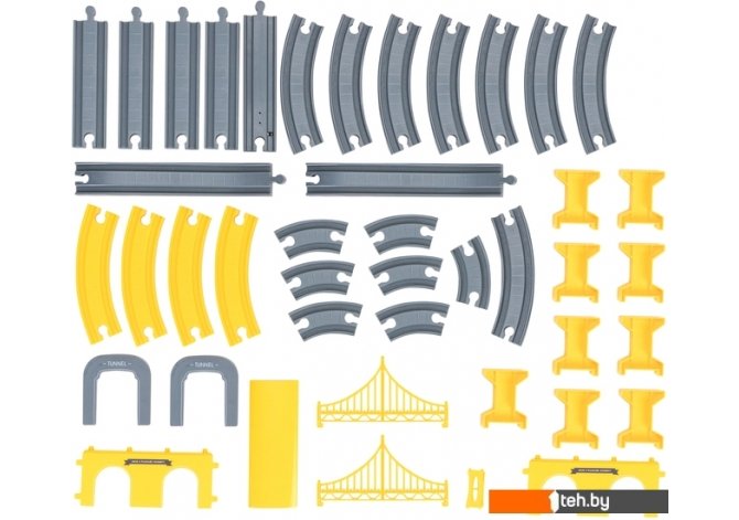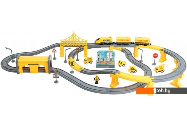 | Состав набора | локомотив, 2 вагона, железная дорогая, мост, туннель, четыре машинки, здание, дорожные знаки - 6 шт. и фигурка строителя |