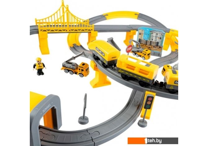 Информация | При нажатии на кнопку локомотива, поезд поедет по рельсам самостоятельно. В вагончик можно посадить пассажира Звуковые эффекты Легко собрать Возможны разные варианты крепления рельсов Совместим с другими моделями железной дороги Bondinbon. |