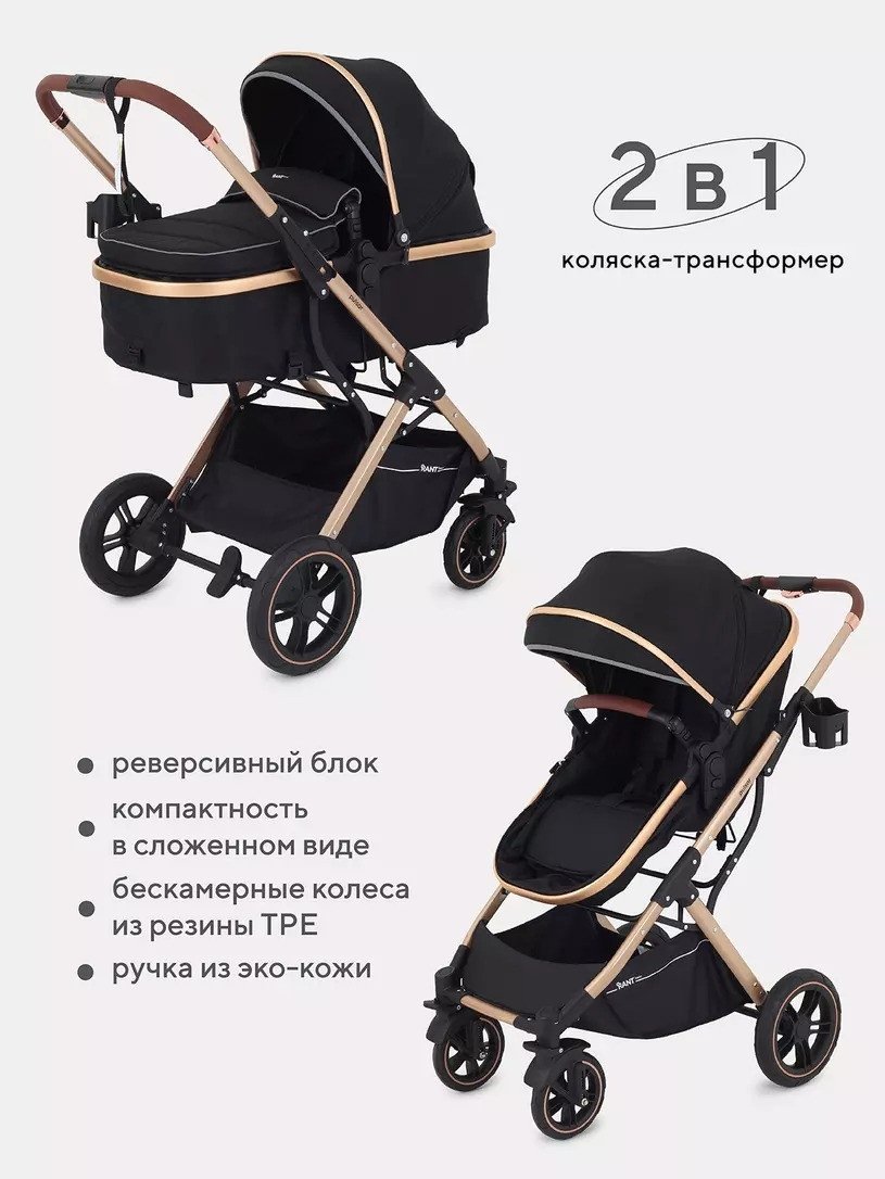 Детские коляски и аксессуары Rant Basic Pulsar Gold RA160 (2 в 1, black)