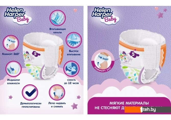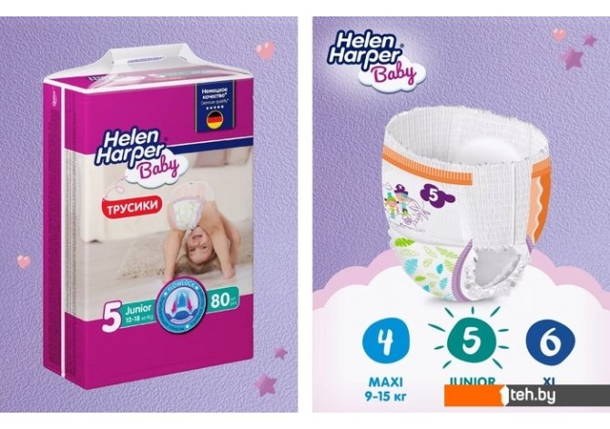 | Информация | ? Трусики-подгузники Helen Harper Baby Junior - идеальный выбор для активных малышей от 4 месяцев. ? Впитывающие каналы (Flowlock) обеспечивают сухость без протечек и провисания между ножек. ? Мягкий и эластичный поясок и резиночки вокруг ножек защищают от протеканий, не натирая кожу и не стесняя движений малыша. ? Прекрасная посадка обеспечивает комфорт и защиту в течение всего дня и ночи. ? Дышащий внешний слой обеспечивает свободную циркуляцию воздуха. ? Индикатор влажности поможет маме следить за состоянием трусиков. ? Соответствуют немецким стандартам качества, не содержат отдушек и дерматологически протестированы. ? Представлены разными размерами, подойдут для малышей любой комплекции. ? Универсальный дизайн подойдет как мальчикам, так и девочкам. |