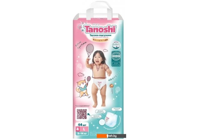 Фотографии, описание и технические характеристики модели Tanoshi Baby Pants L 9-14 кг (132 шт) взяты из открытых источников, официального сайта производителя или представительства Tanoshi в Республике Беларусь.