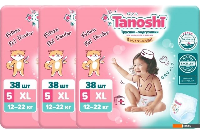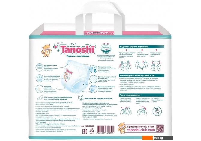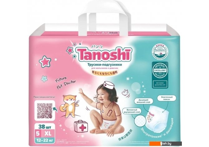 Фотографии, описание и технические характеристики модели Tanoshi Baby Pants XL 12-22кг (114 шт) взяты из открытых источников, официального сайта производителя или представительства Tanoshi в Республике Беларусь.