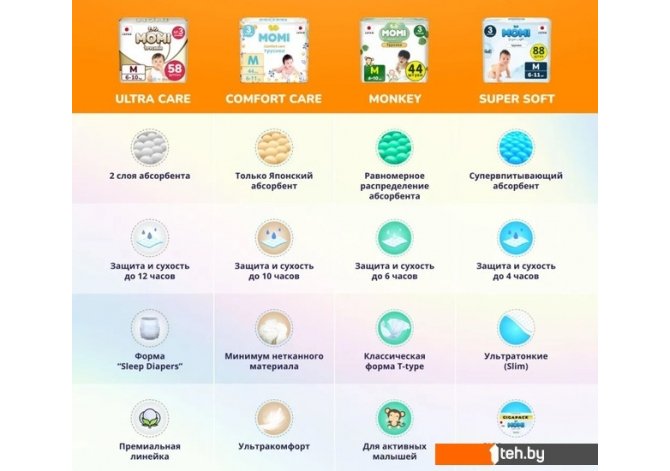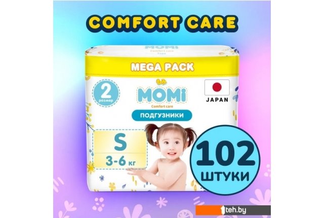 Фотографии, описание и технические характеристики модели Momi Comfort Care Mega pack S 3-6 кг (102 шт) взяты из открытых источников, официального сайта производителя или представительства Momi в Республике Беларусь.