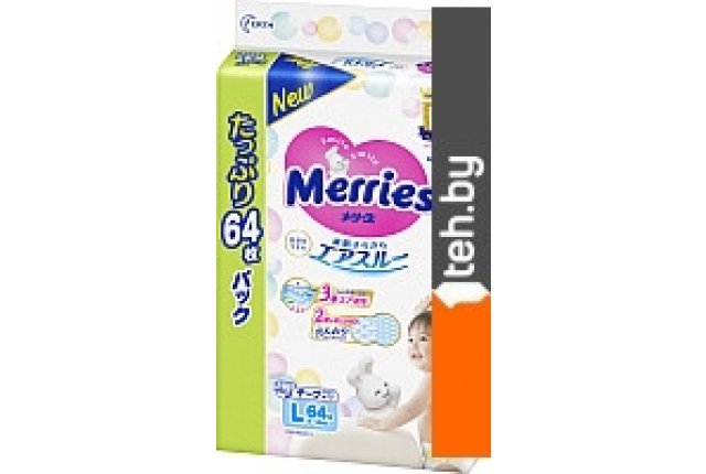 Фотографии, описание и технические характеристики модели Merries L (64 шт) взяты из открытых источников, официального сайта производителя или представительства Merries в Республике Беларусь.