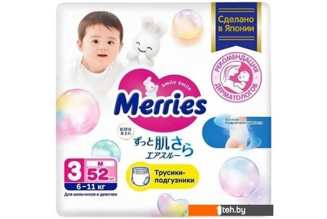 Фотографии, описание и технические характеристики модели Merries M (52 шт) взяты из открытых источников, официального сайта производителя или представительства Merries в Республике Беларусь.