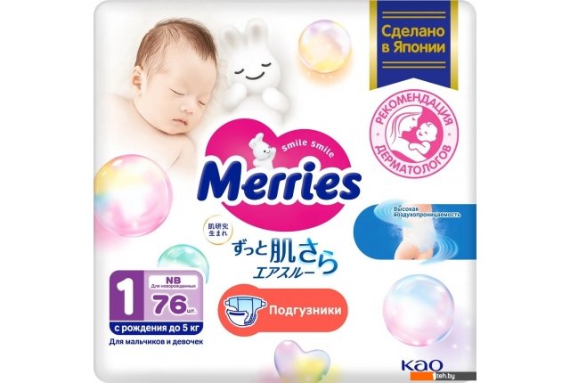 Фотографии, описание и технические характеристики модели Merries NB 1 до 5 кг (76 шт) взяты из открытых источников, официального сайта производителя или представительства Merries в Республике Беларусь.