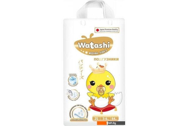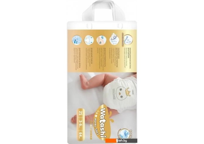 Фотографии, описание и технические характеристики модели Watashi Royal Soft 2/S 3-6кг (64шт) взяты из открытых источников, официального сайта производителя или представительства Watashi в Республике Беларусь.