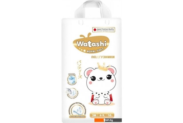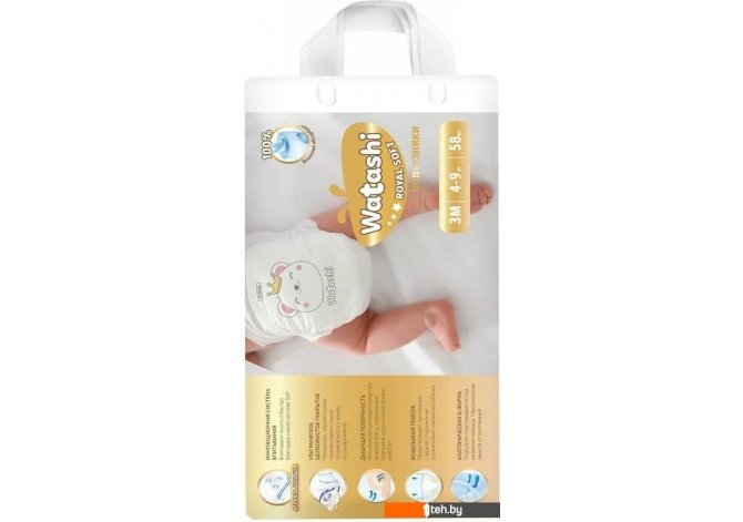 Фотографии, описание и технические характеристики модели Watashi Royal Soft 3/M 4-9кг (58шт) взяты из открытых источников, официального сайта производителя или представительства Watashi в Республике Беларусь.