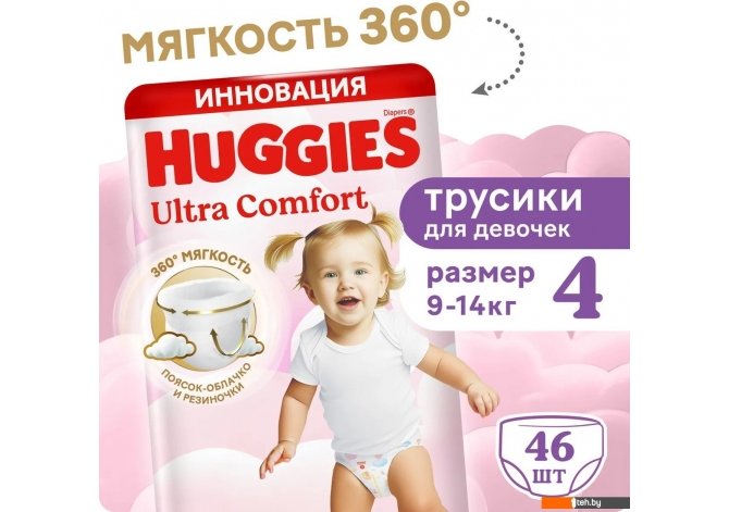 Фотографии, описание и технические характеристики модели Huggies Ultra Comfort Mega 4 Girl (46 шт) взяты из открытых источников, официального сайта производителя или представительства Huggies в Республике Беларусь.