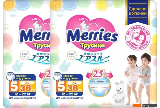 Фотографии, описание и технические характеристики модели Merries XL (76 шт) взяты из открытых источников, официального сайта производителя или представительства Merries в Республике Беларусь.