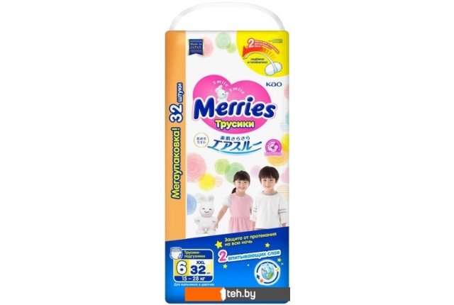 Фотографии, описание и технические характеристики модели Merries XXL 15-28 (32 шт) взяты из открытых источников, официального сайта производителя или представительства Merries в Республике Беларусь.