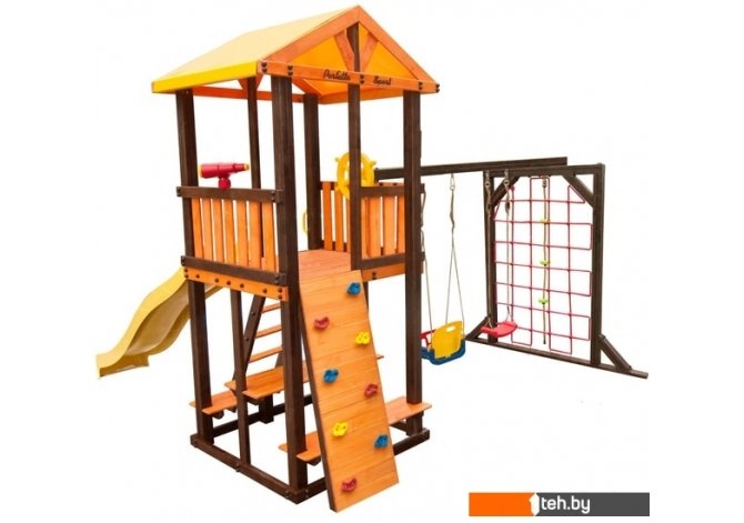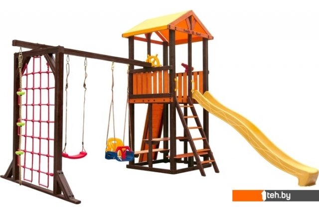 | Информация | Комплекс включает в себя игровой домик, столик, лавочка - 2 шт, лестница, скат, ручка пластиковая - 2 шт, П-опция, качели "Лодочка", качели "Малыш", канат с зацепами, штурвал "Шторм", бинокль "Капитан", скалодром маленький |