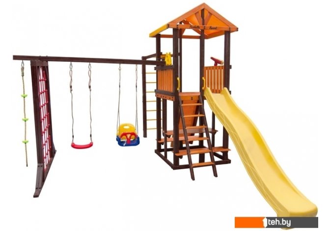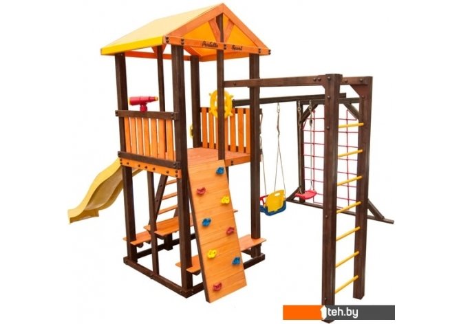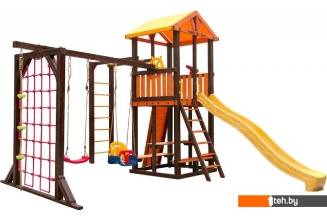 | Информация | Комплекс включает в себя игровой домик, столик, лавочка - 2 шт, лестница, скат, ручка пластиковая - 2 шт, Р-опция, П-опция, качели "Лодочка", качели "Малыш", канат с зацепами, штурвал "Шторм", бинокль "Капитан", скалодром маленький |