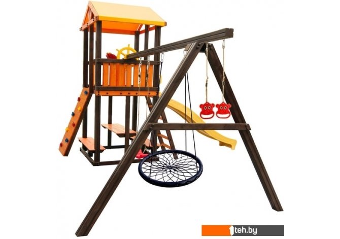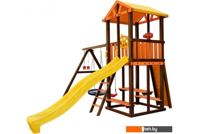 | Информация | Комплекс включает в себя игровой домик, столик, лавочка - 2 шт, лестница, скат, ручка пластиковая - 2 шт, А-опция, качели "Лодочка" 1 шт, кольца "Микки", штурвал "Шторм", бинокль "Капитан", скалодром маленький, качели "Паутина" |