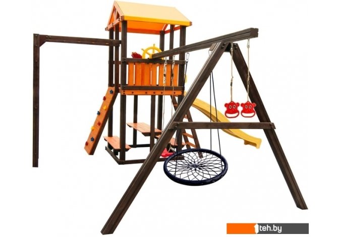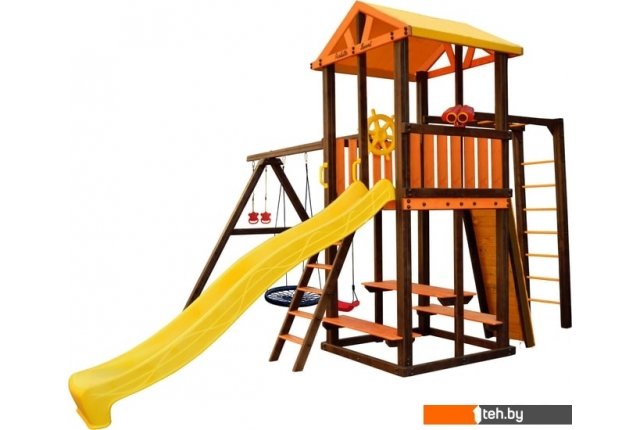 | Информация | Комплекс включает в себя игровой домик, столик, лавочка - 2 шт, лестница, скат, ручка пластиковая - 2 шт, Р-опция, А-опция, качели "Лодочка" 1 шт, кольца "Микки", штурвал "Шторм", бинокль "Капитан", скалодром маленький, качели "Паутина" |