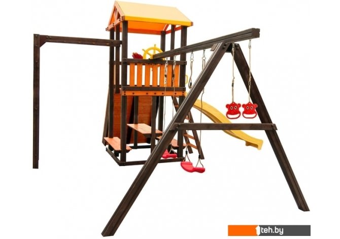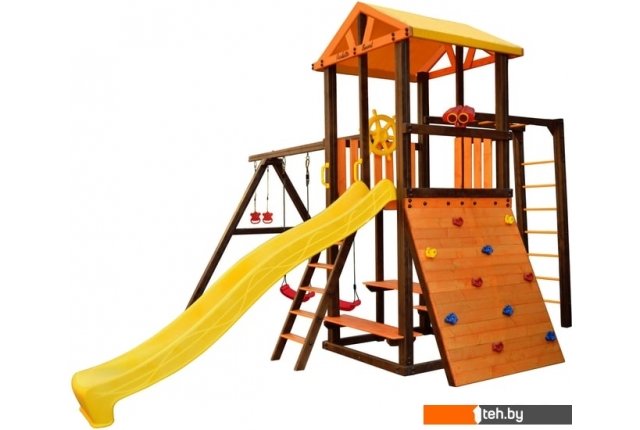 | Информация | Комплекс включает в себя игровой домик, столик, лавочка - 2 шт, лестница, скат, ручка пластиковая - 2 шт, Р-опция, А-опция, качели "Лодочка" 2 шт, кольца "Микки", штурвал "Шторм", бинокль "Капитан", скалодром большой |
