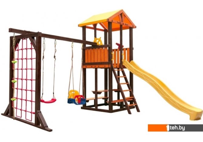 | Информация | Комплекс включает в себя игровой домик, столик, лавочка - 2 шт, лестница, скат, ручка пластиковая - 2 шт, П-опция, качели "Лодочка", качели "Малыш", канат с зацепами, штурвал "Шторм", бинокль "Капитан" |