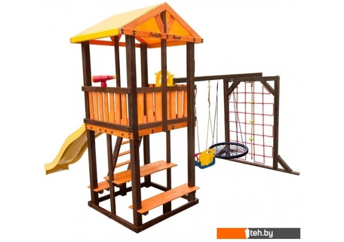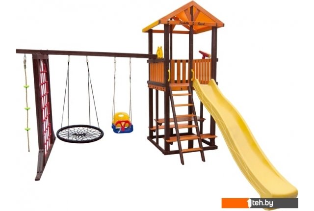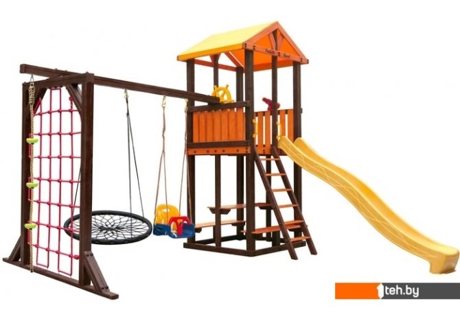 | Информация | Комплекс включает в себя игровой домик, столик, лавочка - 2 шт, лестница, скат, ручка пластиковая - 2 шт, П-опция, качели "Малыш", канат с зацепами, штурвал "Шторм", бинокль "Капитан", качели "Паутина" |