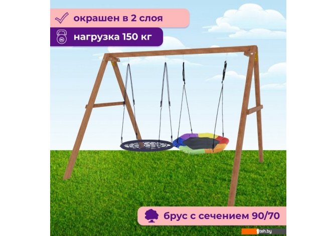 | Информация | - Уличные качели Капризун Деревянные с гнездом Гексагон и гнездом 100 Р911-60 идеально подходят для использования на даче и во дворе частного дома. - Игровые качели легко устанавливаются на любой свободной от насаждений ровной территории. - Это изделие позволит малышам весело развлечься с максимальной пользой для вестибулярного аппарата. - Качели развивают ловкость и силу мышц ребенка, способствуют здоровому физическому развитию, дарят хорошее настроение и заряжают позитивными эмоциями. - Особенностью товара является высокое качество материалов и прочность крепления всех элементов. - Все карабины и кронштейны в комплекте помогают создать надежную конструкцию. - Благодаря этому, качели отличаются высокой безопасностью для малышей с разным весом. - Являясь обязательным атрибутом загородного дома, способствующим полноценному отдыху и расслаблению, такие качели позволят отдохнуть в тени деревьев, весело провести время детям на свежем воздухе. |