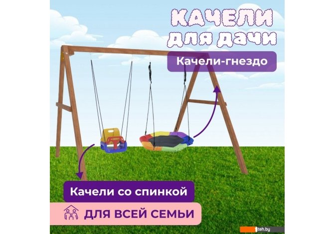 | Информация | - Уличные качели идеально подходят для использования на даче и во дворе частного дома. - Игровые качели легко устанавливаются на любой ровной территории без растительности. - Это изделие поможет детям весело развлечься и развить свой вестибулярный аппарат. - Качели способствуют развитию ловкости и силы мышц, а также заряжают позитивными эмоциями. - Они изготовлены из высококачественных материалов и имеют прочное крепление всех элементов. - В комплекте имеются карабины и кронштейны для создания надежной конструкции. - Благодаря этому, качели обеспечивают высокий уровень безопасности для детей разного веса. - Эти качели являются неотъемлемым атрибутом загородного дома, способствуя полноценному отдыху и расслаблению, а также позволяют детям весело провести время на свежем воздухе в тени деревьев. |