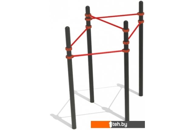 | Информация | Параметры: * Профиль столбов круглый диаметром - 76 мм * Профиль перекладин круглый - 32 мм * Хомуты D76 - 10 шт * Краска - порошковая * Цвет столбов - чёрный * Цвет перекладин - красный * Установка - бетонирование + к длине труб (400-600 мм) * Комплекс состоит из четырех вертикальных опорных столбов: 4 шт - 2600 мм (3200 мм) * Перекладина длиной 1200 мм - 5 шт Дополнительная информация: * Перекладина крепится на высоте: 1 шт - 2400 мм, 1 шт - 2300 мм, 2 шт - 2100 мм, 1 шт - 1900 мм |