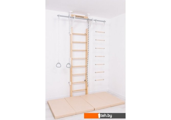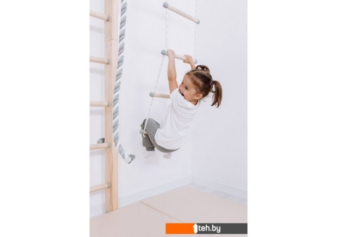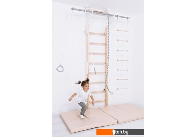 | Информация | Дополненная прочным турником и навесным оборудованием модель деревянной шведской стенки в белом цвете.Каркас и ступени спортивного комплекса изготовлены из хвойной древесины, что высоко ценится любителями натуральных материалов в интерьере. Покрытие комплекса выполнено краской белого цвета, экологически безопасной для детей.Спортивный комплекс может быть установлен как к стене, так и враспор - в зависимости от того, как удобно пользователю. По необходимости стенку легко переставить в другое место. В комплексе предусмотрен широкий фиксированный турник, на котором размещается навесное оборудование: кольца, веревочная лестница и канат.Если в вашем интерьере преобладают пастельные тона, то спортивный комплекс по достоинству займет там свое место! |