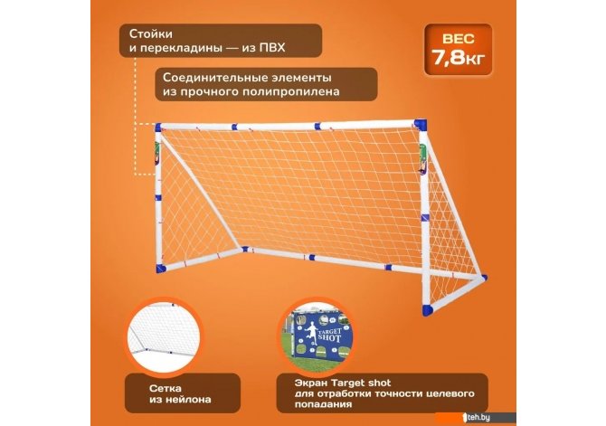 | Информация | - Футбольные ворота JC-7180T — идеальный выбор для любителей спорта и активного отдыха. Их прочная конструкция из ПВХ с добавлением полипропилена гарантирует надежность и долговечность, что делает их отличным вариантом для семейных игр и тренировок. - Размеры 183?130?96 см подходят как для взрослых, так и для детей, что позволяет использовать ворота в различных возрастных категориях. Комплектация включает нейлоновую сетку и экран с целью, что расширяет возможности использования: от футбольных матчей до тренировок на точность ударов. - Легкость установки и транспортировки делает эти ворота удобными для перемещения в любом месте — будь то сад, двор или спортивная площадка. Вес всего 7.8 кг позволяет легко перемещать ворота, что добавляет удобства в использовании. - Прочные материалы обеспечивают долгий срок службы даже при активном использовании, а многофункциональность делает их отличным выбором для игр и тренировок. Футбольные ворота JC-7180T — надежный спутник для вашего активного досуга! |