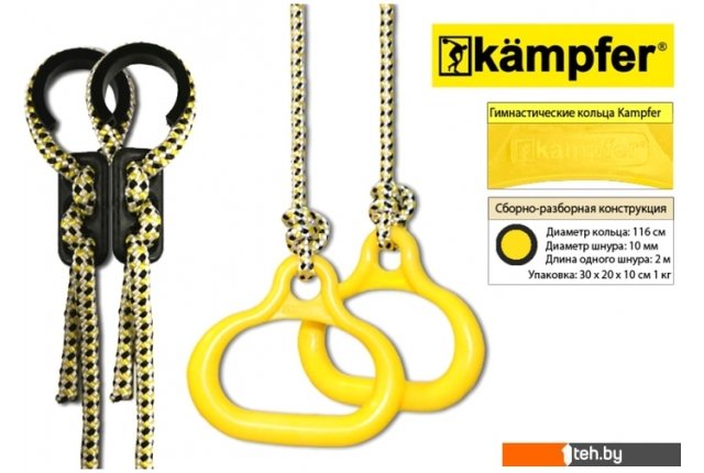 | Информация | Пластиковые гимнастические кольца — спортивный аксессуар для спорткомплексов любой модификации. На кольцах можно висеть, хватаясь руками или ногами. Кроме того, кольца можно использовать как дополнительную опору во время лазания по спортивному комплексу. Комплектация: — Кольцо: 2 шт — Шнур: 2 шт — Катушка: 2 шт — Фиксатор: 2 шт |
