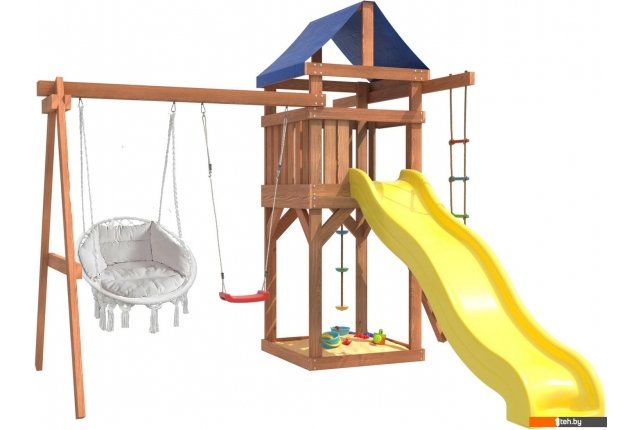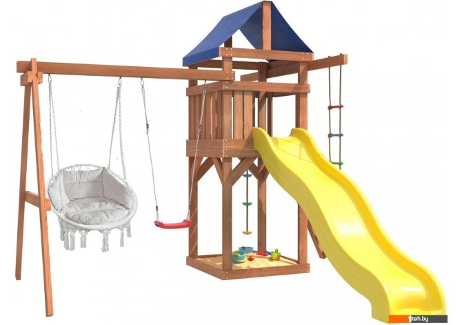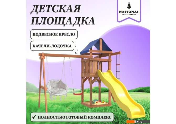 | Информация | - Игровой комплекс National Tree Company представляет собой многофункциональную детскую площадку, включающую в себя горку, качели, песочницу, игровую веранду, веревочную лестницу, скалодром и канат. - Этот игровой комплекс способствует развитию физической формы, координации движений и логического мышления у детей от 3 до 14 лет. - Подвесные качели для улицы подходят для детей и взрослых, выдерживая общий вес до 250 кг. - Площадка изготовлена из лесоматериалов лиственных и хвойных пород, обработанных специальными составами для защиты от разрушения древесины. |