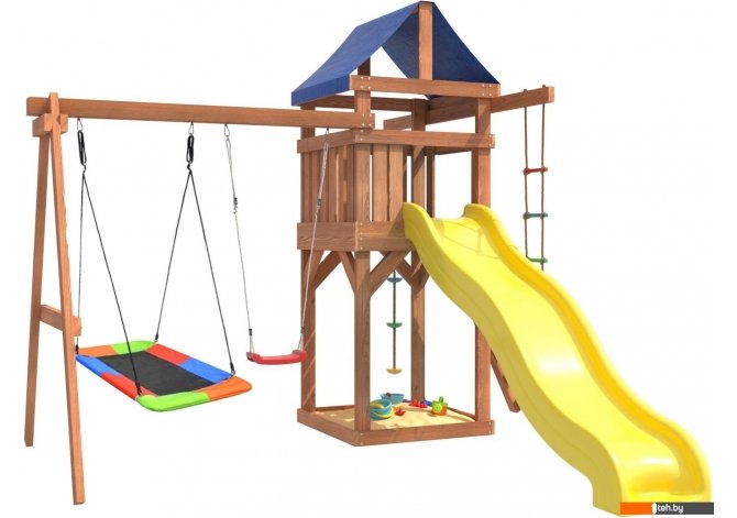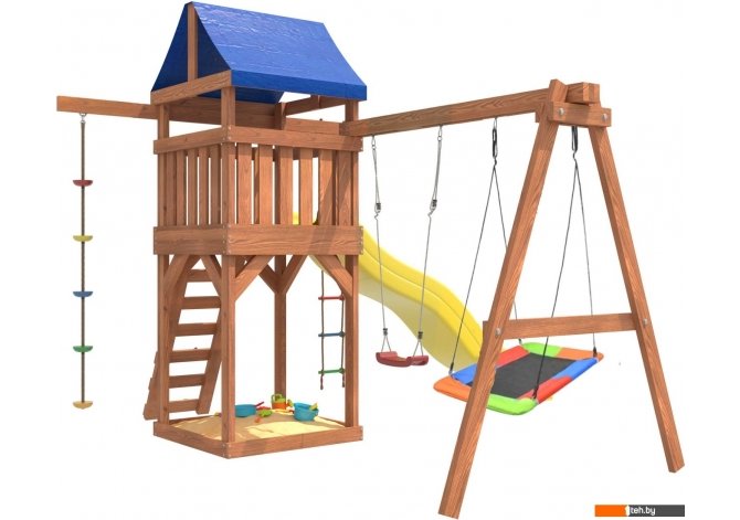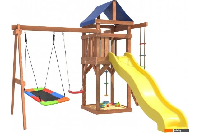 | Информация | - Игровой комплекс National Tree Company включает в себя горку, качели, песочницу, игровую веранду, веревочную лестницу, скалодром и канат. - Детская игровая площадка является многофункциональным спортивным игровым комплексом для детей от 3 до 14 лет. - Садовые качели подвесные для улицы детские и взрослые, подойдут абсолютно для всех, так как качельная балка и полиуретановые канаты выдерживают общий вес до 250 кг. - Площадка изготавливается из лесоматериалов лиственных и хвойных пород, обработанных специальными составами для большего срока использования и предохранения от разрушения древесины. |