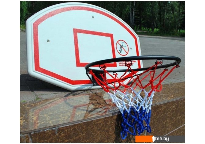 | Информация | Щит баскетбольный. Может использоваться как в зале, так и на улице. В комплект входит кольцо стальное, сетка, крепежные болты. Предназначен для крепления на столб, дерево, стену. |
