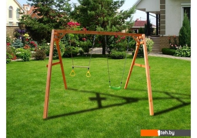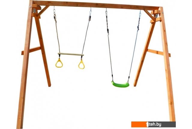 | Информация | Детские игровые качели изготовлены из качественного дерева. Этот уличный вариант отлично подходит для использования на даче и во дворе частного дома. Игровые качели с легкостью устанавливаются на любой свободной от насаждений ровной территории. Данное изделие позволит малышам весело развлечься с максимальной пользой для вестибулярного аппарата. Качели будут развивать ловкость и силу мышц ребенка, способствовать здоровому физическому развитию, дарить хорошее настроение и заряжать позитивными эмоциями.Особенностью данного товара является высокое качество материалов и прочность крепления всех элементов. Все карабины и кронштейны в комплекте помогают создать надежную конструкцию. Благодаря этому, качели отличаются высокой безопасностью для малышей с разным весом. |