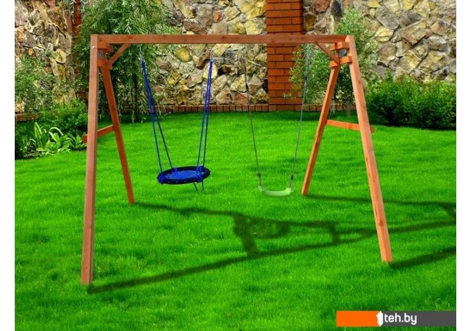 | Информация | Детские игровые качели изготовлены из качественного дерева. Этот уличный вариант отлично подходит для использования на даче и во дворе частного дома. Игровые качели с легкостью устанавливаются на любой свободной от насаждений ровной территории. Данное изделие позволит малышам весело развлечься с максимальной пользой для вестибулярного аппарата. Качели будут развивать ловкость и силу мышц ребенка, способствовать здоровому физическому развитию, дарить хорошее настроение и заряжать позитивными эмоциями.Особенностью данного товара является высокое качество материалов и прочность крепления всех элементов. Все карабины и кронштейны в комплекте помогают создать надежную конструкцию. Благодаря этому, качели отличаются высокой безопасностью для малышей с разным весом. |