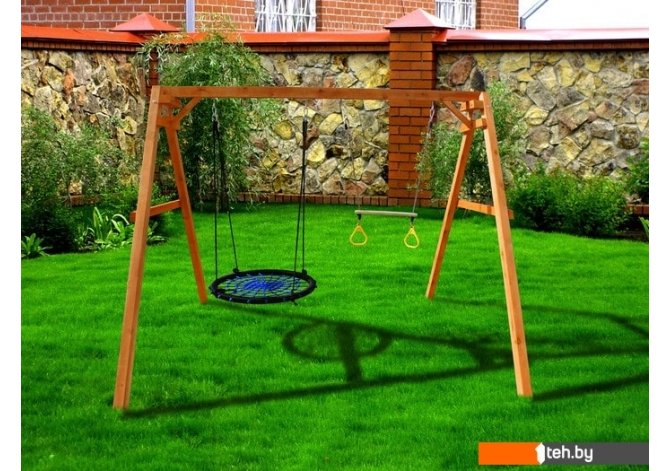 | Информация | Детские игровые качели изготовлены из качественного дерева. Этот уличный вариант отлично подходит для использования на даче и во дворе частного дома. Игровые качели с легкостью устанавливаются на любой свободной от насаждений ровной территории. Данное изделие позволит малышам весело развлечься с максимальной пользой для вестибулярного аппарата. Качели будут развивать ловкость и силу мышц ребенка, способствовать здоровому физическому развитию, дарить хорошее настроение и заряжать позитивными эмоциями.Особенностью данного товара является высокое качество материалов и прочность крепления всех элементов. Все карабины и кронштейны в комплекте помогают создать надежную конструкцию. Благодаря этому, качели отличаются высокой безопасностью для малышей с разным весом. |